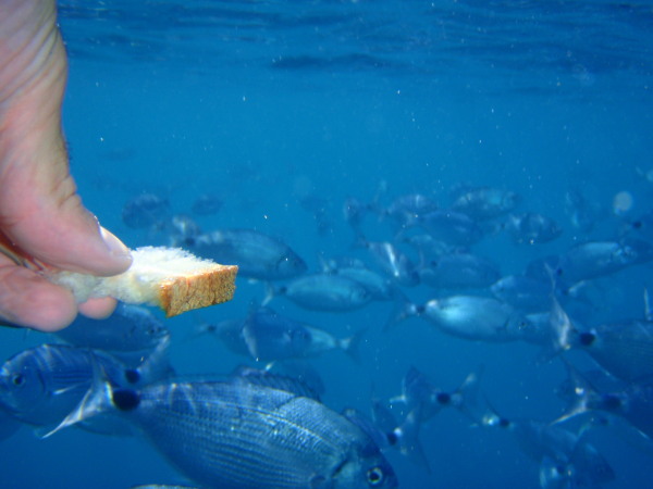 Baignade des Iles Medes au milieu d'une multitude de poissons.