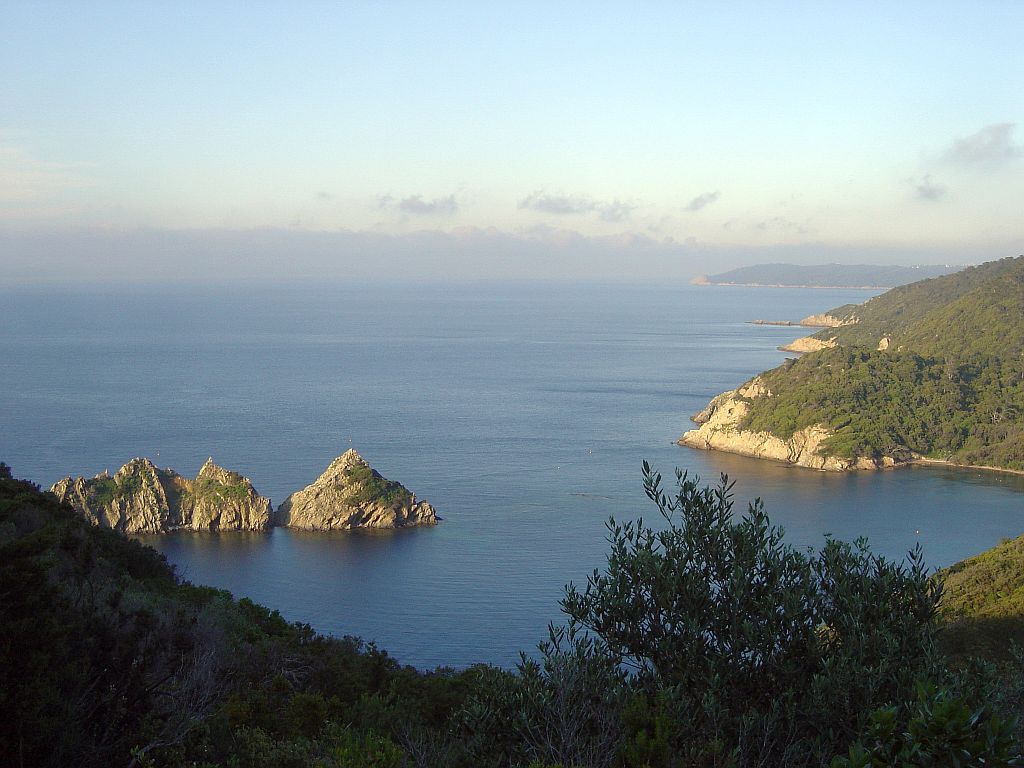 Baie de la Palud pris depuis le fort de Port Cros. Un parcours sous marin est aménagé (+ d'info http://www.portcrosparcnational.fr/documentation/pdf/institution_sentier_sm.pdf ).